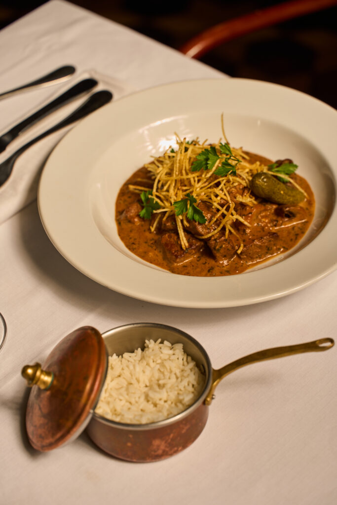 O restaurante é reconhecido por oferecer excelência em pratos clássicos. No cardápio estão opções de entrada como porções de croquetas de pato e burrata com funghi e azeite de manjericão, até pratos principais como Confit de Canard e Boeuf Bourguignon e massas como Rigatoni Ai Crema Di Pomodoro. As sobremesas também se destacam, como a clássica tarte tatin, os profiteroles, e o petit gâteau.